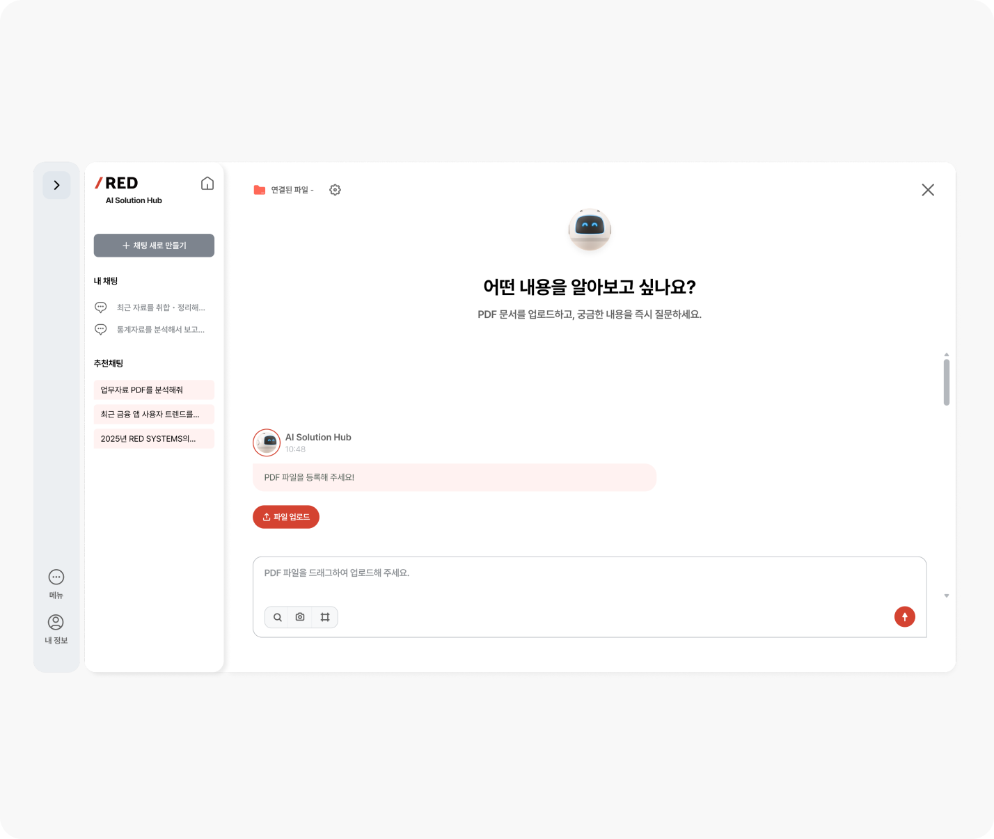 보안 완벽 문서 Q&A 시스템을 만나보세요.- 문서 업로드 PDF, Word, 이미지 등 다양한 형식 즉시 업로드
